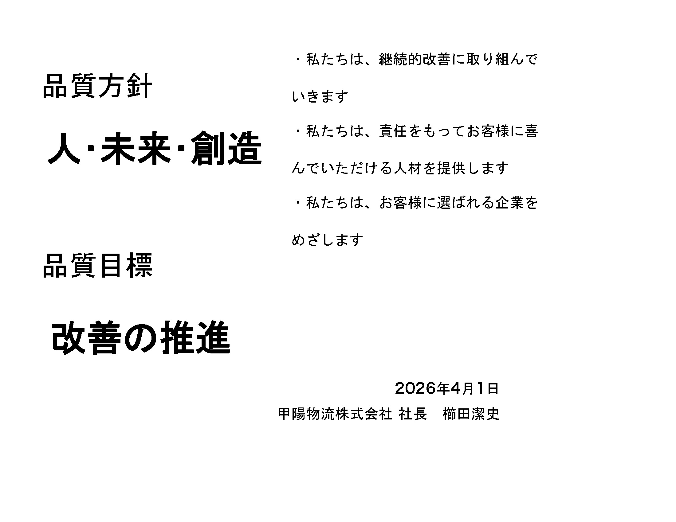 「私たちは、お客様のベストパートナーとなるために高品質・低コストを追求し、常に顧客満足を推進します。そして、お客様に喜ばれ最も信頼される企業となります。」